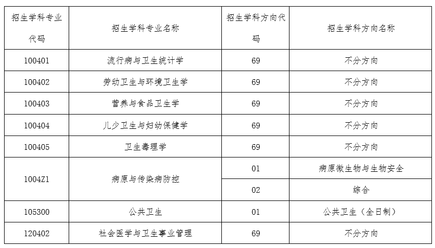 说明:“综合”方向指病原与传染病防控专业下“病原微生物与生物安全”方向以外的其他方向。