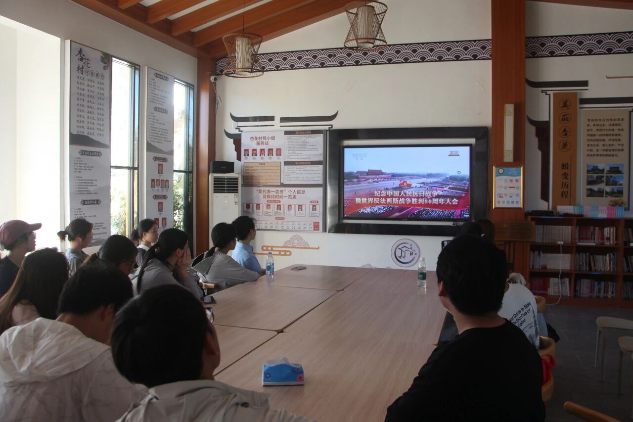 团队在实践期间集中观看了纪念中国人民抗日战争暨世界反法西斯战争胜利80周年盛大阅兵仪式的直播。通过观看这场气势恢宏的阅兵式,同学们深刻感受到人民军队的威武雄壮,更加坚定了爱国主义信念。