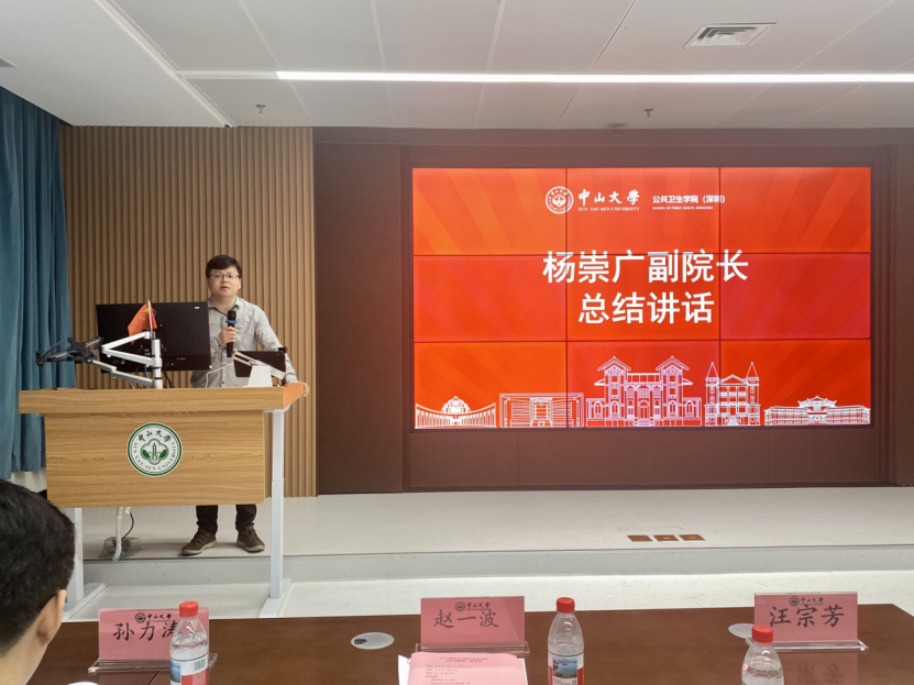 杨崇广作总结发言。他勉励新生:勇担时代使命,肩负守护人民健康的责任;尽早适应研究生阶段的创新学习方式,积极与导师沟通,夯实学术基础;注重跨学科融合,培养综合素养与国际视野,共同营造开放包容的学术氛围。他强调,学院将为学生提供全方位支持,助力大家成长成才。同时,赵一波为新生开展了纪律与安全教育,帮助大家尽快适应校园生活。