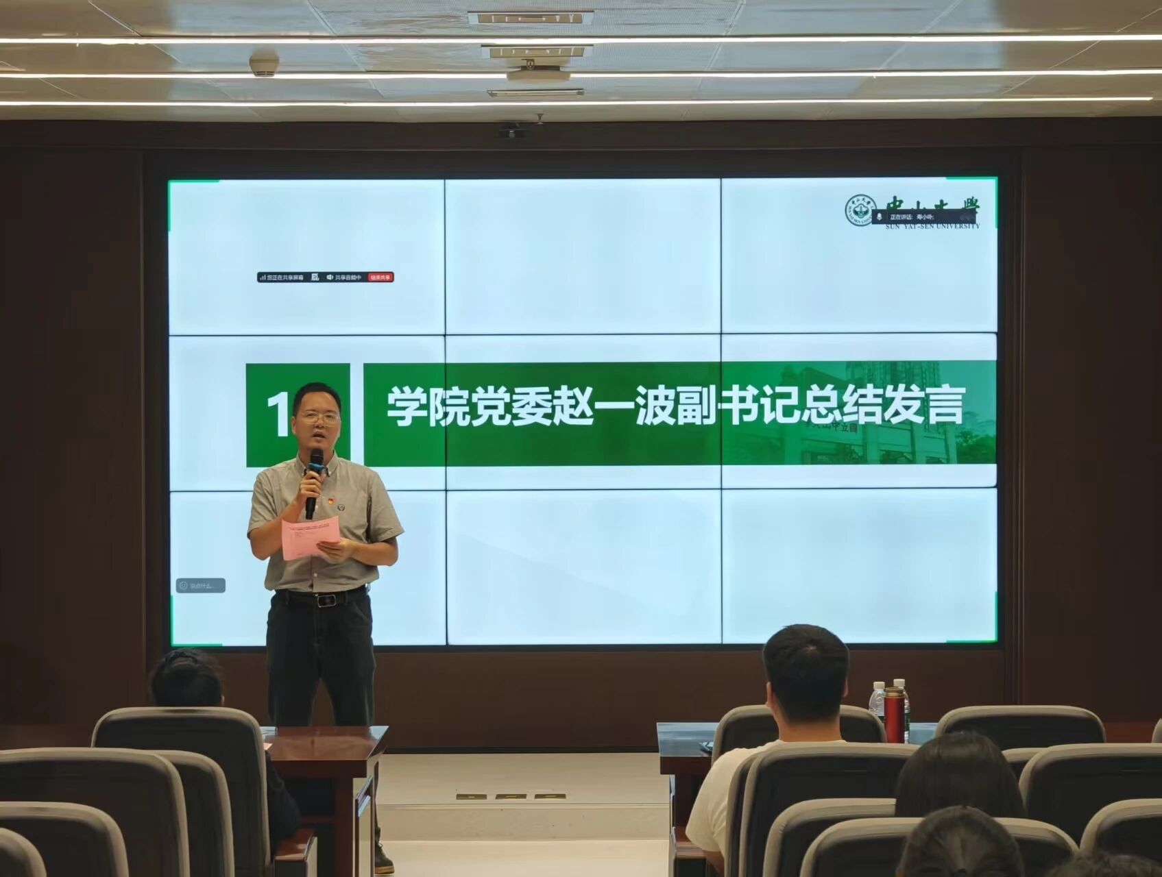 最后由赵一波总结发言。他对团委、学生会全体成员过去一年的辛勤付出表示衷心感谢。他指出,新一届团委、学生会干部要继续发扬服务学院师生的精神底色,打造兼具组织力、引领力和服务力的先进学生组织;全体同学应坚定理想信念,将个人成长与学院、学校和国家发展结合起来,努力成长为高素质公共卫生人才。