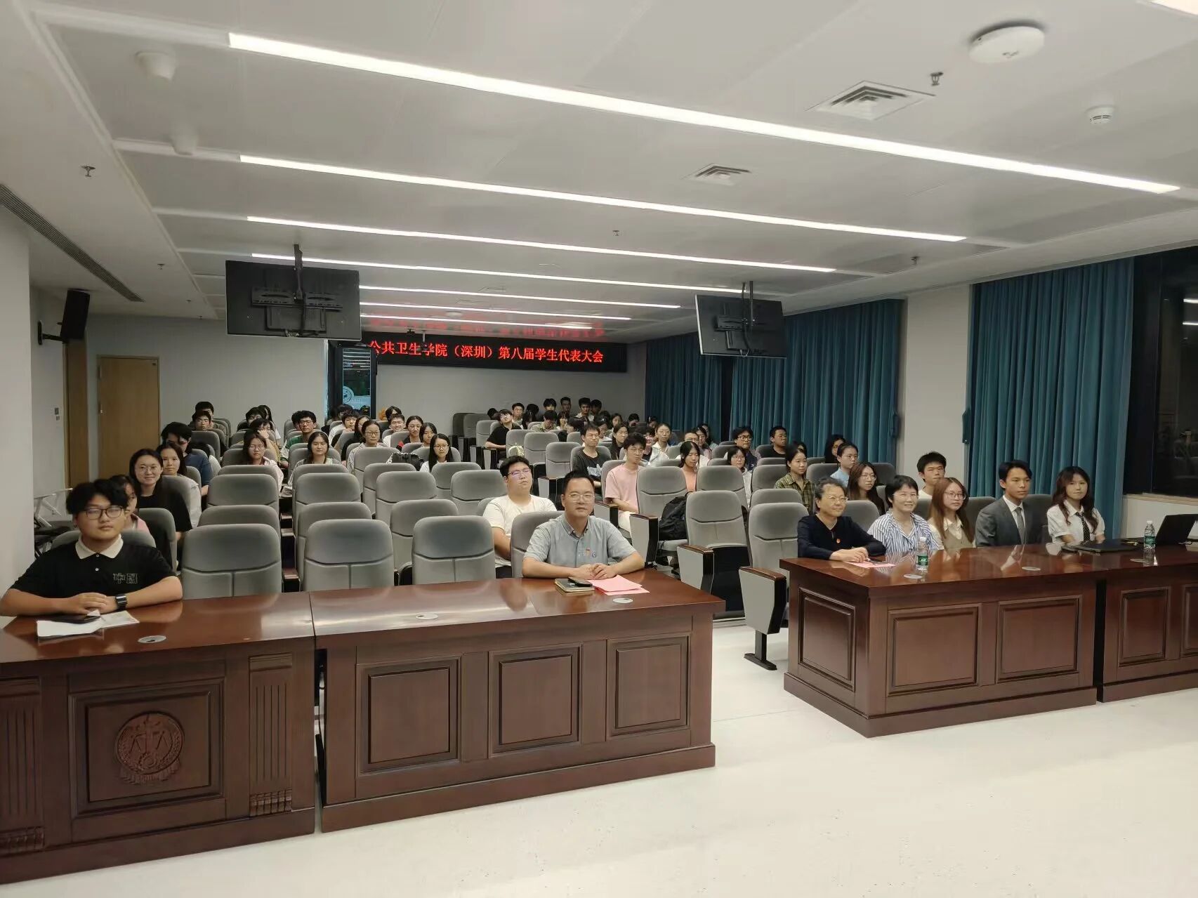 2025年10月20日晚,太阳网集团tcy8722(深圳)第八届学生代表大会于深圳校区医学园西1-101召开。院党委汪宗芳书记、副书记赵一波,本科生辅导员黄琳,院团委、学生会代表及90余名本科生代表出席本次会议。会议由洁吾海尔和张辰主持。