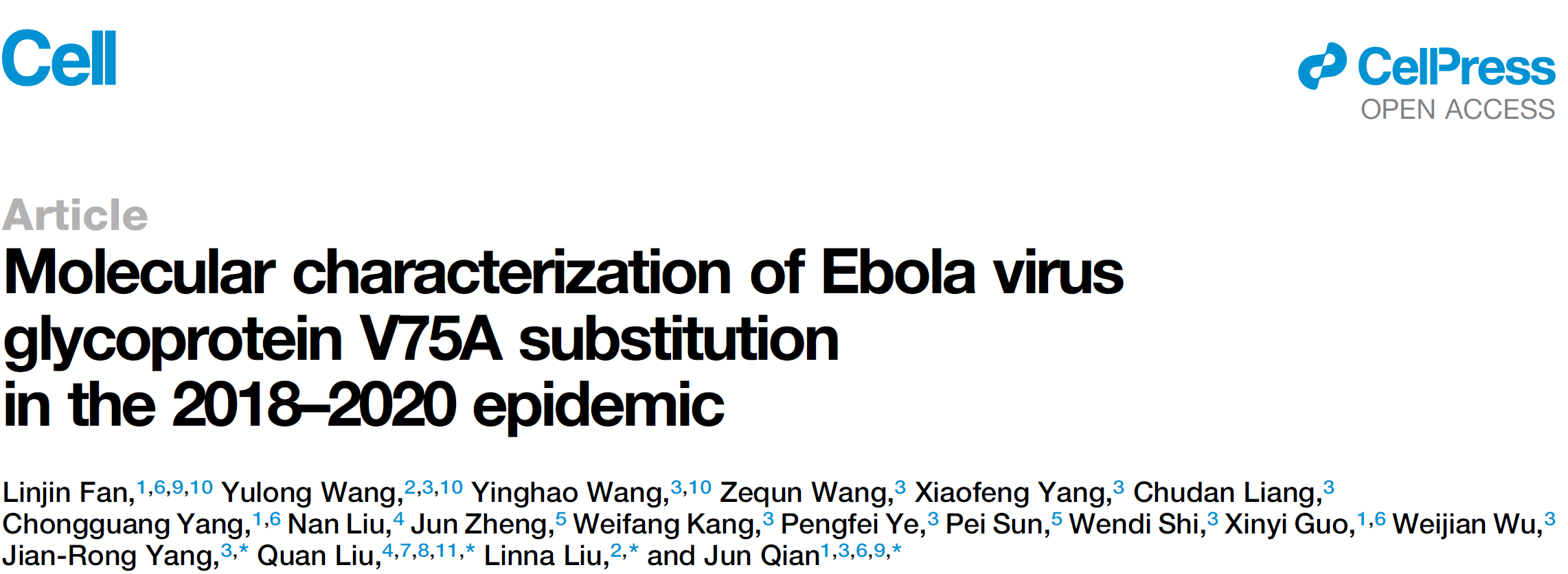 2026年1月23日,老太阳集团tcy8722网站钱军教授团队联合广州医科大学附属市八医院刘林娜教授团队、吉林大学第一医院刘全教授团队以及老太阳集团tcy8722网站杨建荣教授团队,在国际顶尖学术期刊Cell上发表了题为“Molecular characterization of Ebola virus glycoprotein V75A substitution in the 2018–2020 epidemic”的研究论文。