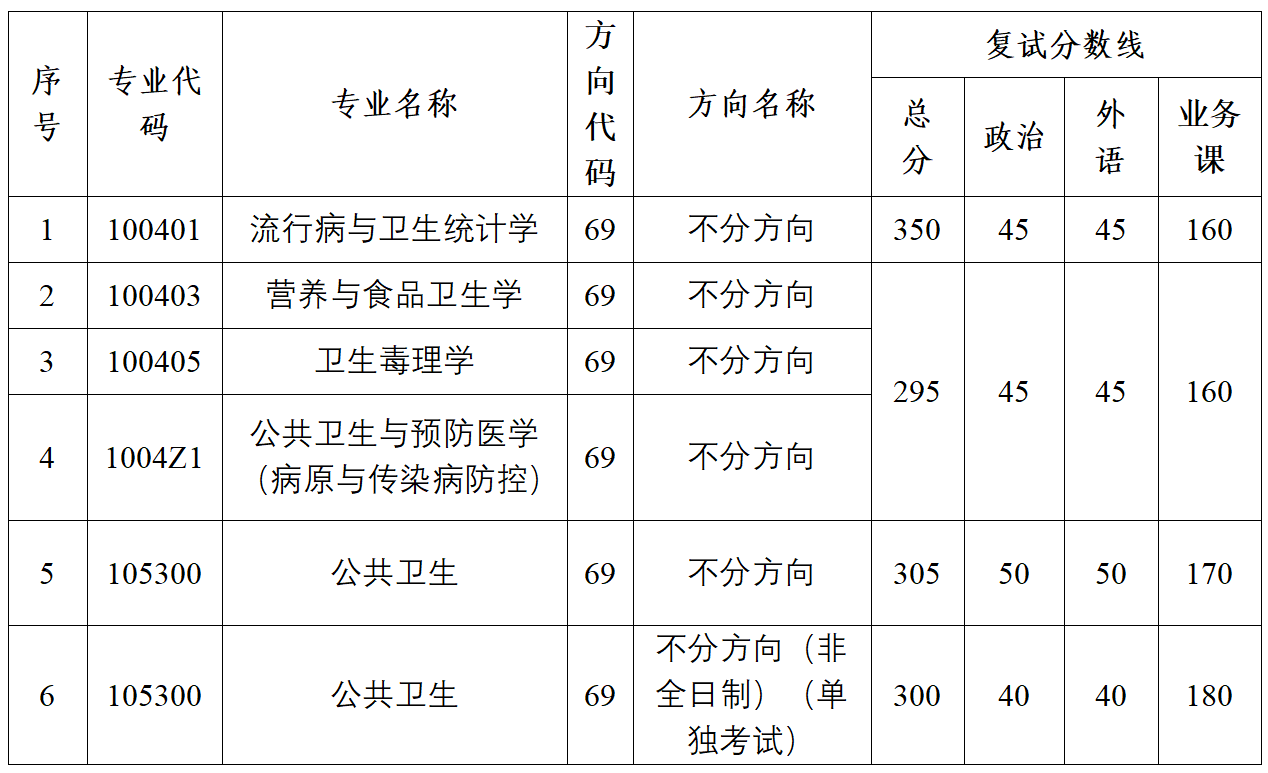 1.我院各专业复试分数线如下: