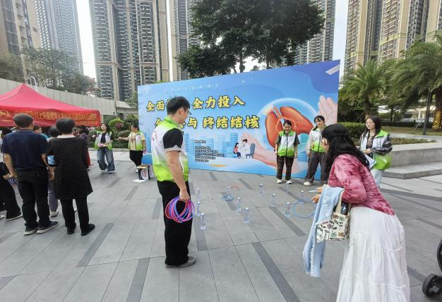 趣味游戏区作为活动的核心亮点,设计了抽签问答、文明投掷、套圈等多个互动环节,将知识问答与趣味游戏相结合,现场氛围热烈。参与者在轻松玩乐的氛围中完成挑战,既加深了对结核防治核心知识的记忆,也增加了体验感,真正实现了“寓教于乐”。为激励群众广泛参与,活动还设置了奖项及奖品,居民在收获快乐的同时,将健康防护知识牢记心中。