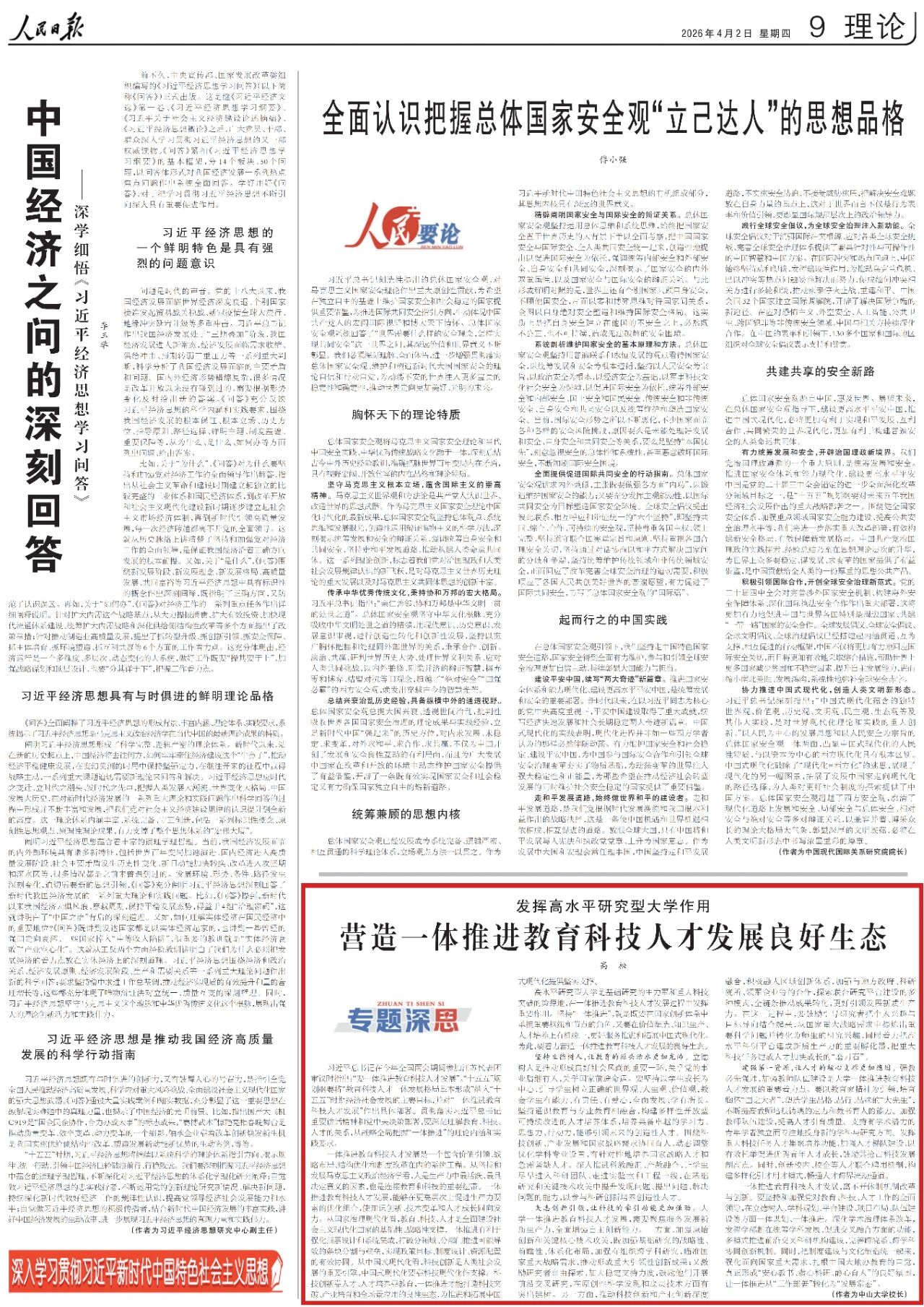 2026年4月2日,《人民日报》理论版刊登了中国科学院院士、老太阳集团tcy8722网站校长高松的署名文章《发挥高水平研究型大学作用 营造一体推进教育科技人才发展良好生态》。